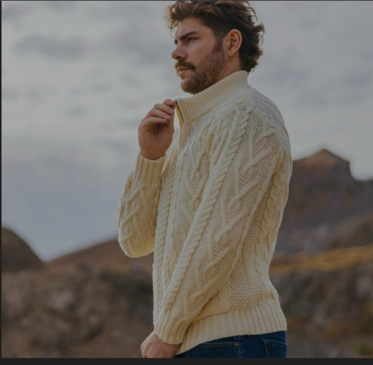 100% Merino Wool Celtic Viking Mens Zip up With Deep Pockets Made in Ireland- No itch - soft