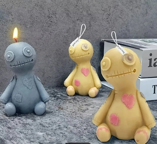AVAIL NEXT WEEK Revenge Voodoo Doll Candle-Handmade Custom Beeswax w Spell Herbs, Alchemy Oils and Gemstones - Comes w 10 Pins 3.5inch tall